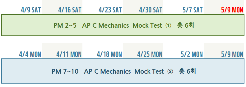 ▶ AP Physics C Mechanics ( 주말 토요일 반, 평일 월요일 반 중 선택 등록 )