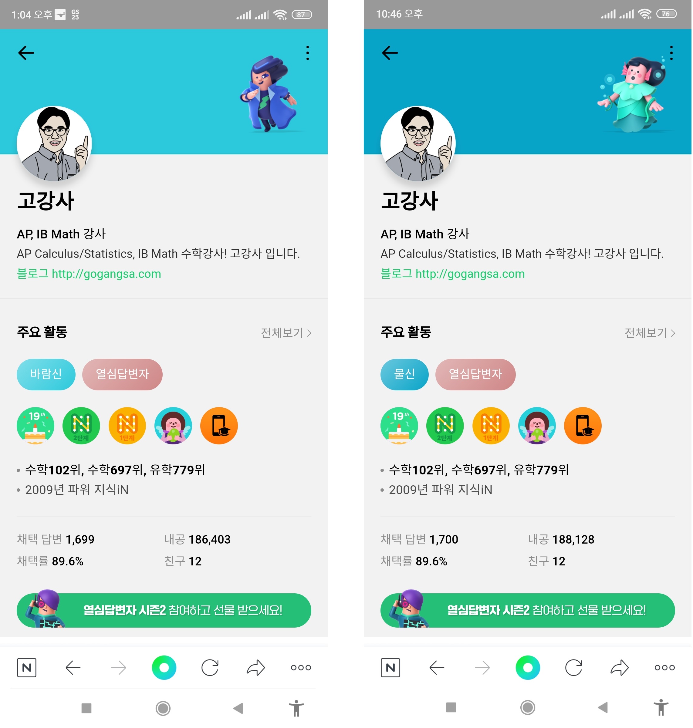고강사 네이버 지식인 별신 등업!