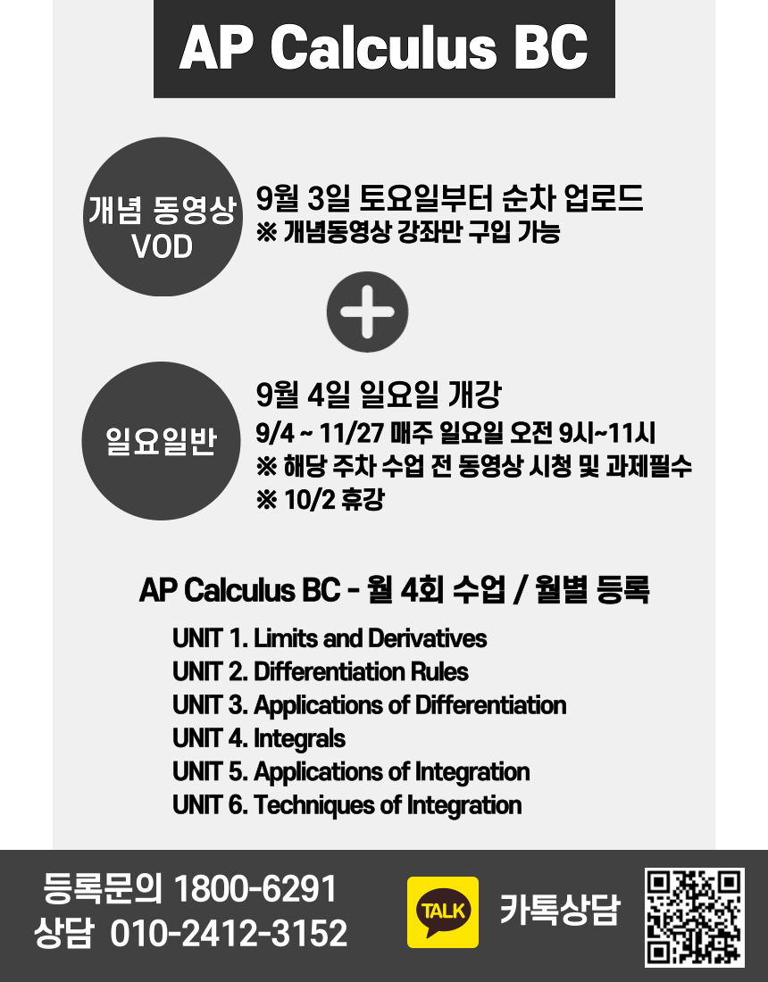 2022 가을 고봉기쌤의 AP Calculus, AP Statistics