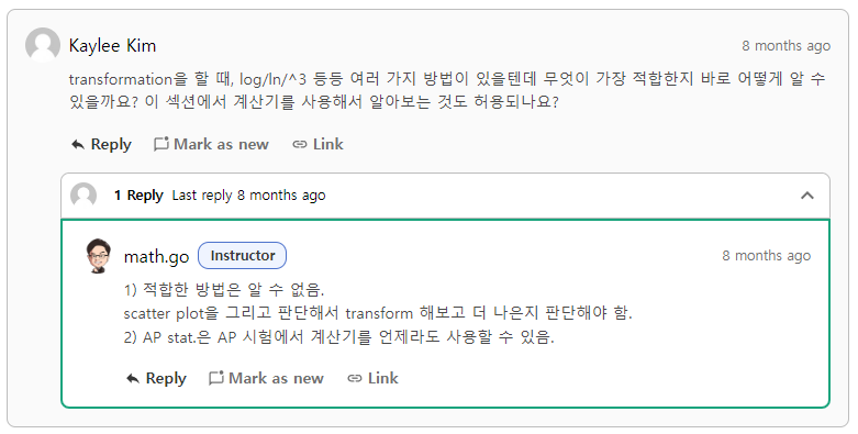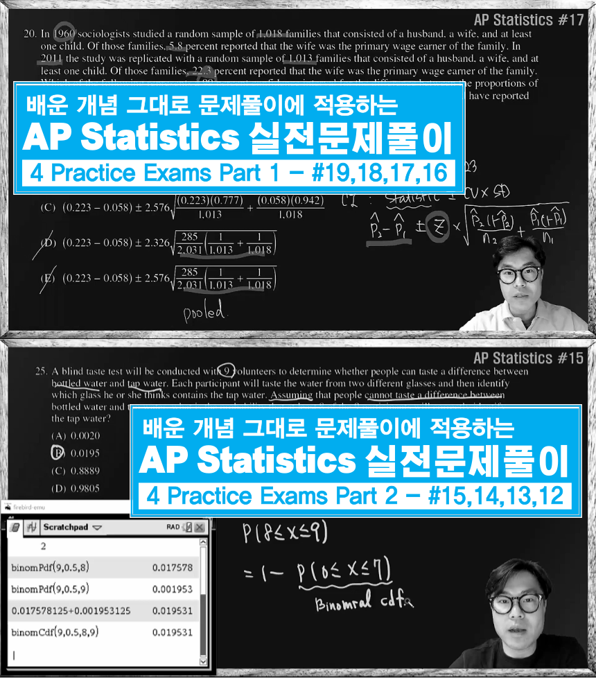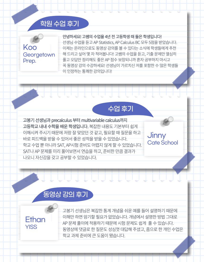 | AP Statistics 개념정리 동영상 - 선착순 50% 할인 (0) | 2022.06.25 |
