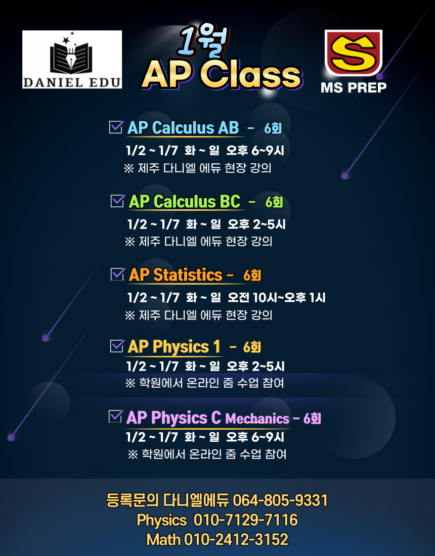 제주 AP 특강 안내 @다니엘에듀