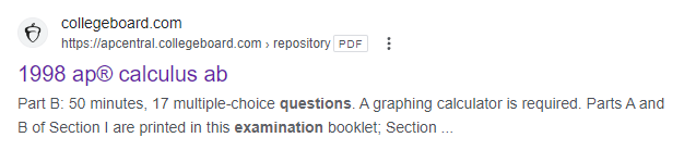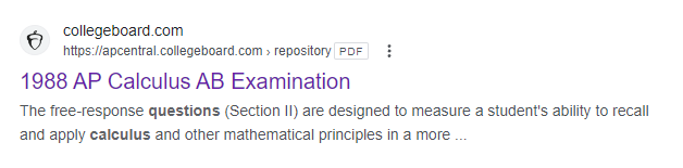그 중에 1988년과 1998년 AP Calculus AB 기출문제가 딱 보이네요. 링크는 컬리지보드의 링크입니다.