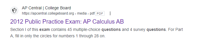 구글 검색 - AP Calculus Practice Exam filetype:pdf