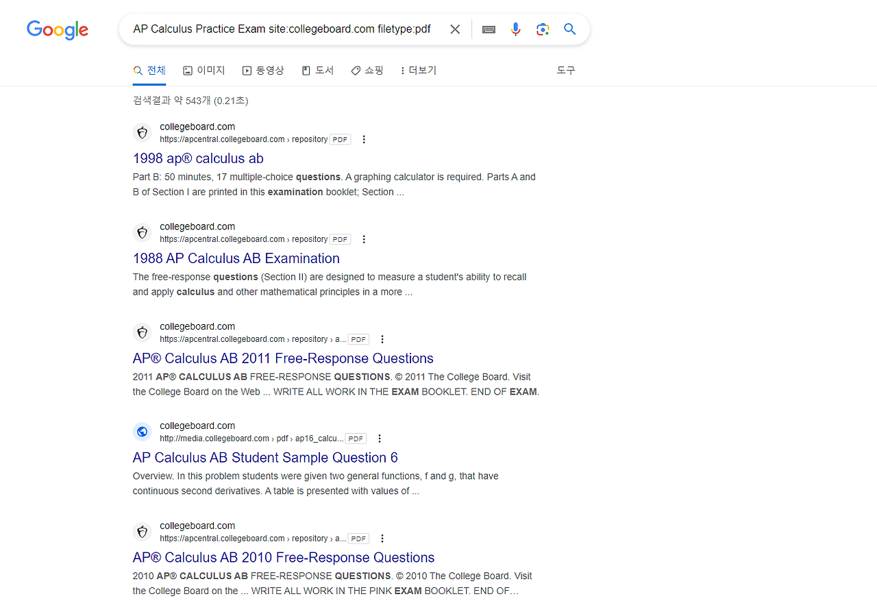 구글 검색 - AP Calculus Practice Exam site:collegeboard.com filetype:pdf