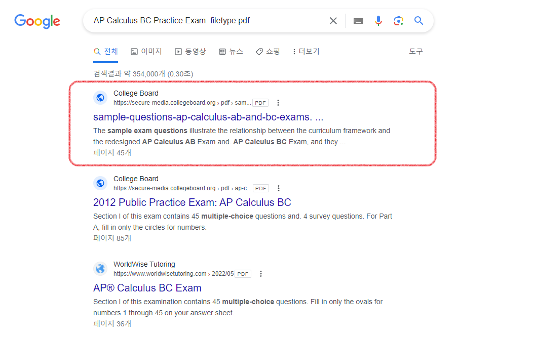 공짜로 AP 시험 기출문제를 구하려면 키워드를 바꿔가면서 구글링을 열심히 해보면 되는데, 사실 상당한 시간과 노력을 들여야 하고, 검색한다고 기출문제가 쉽게 찾아지는 것도 아닙니다. 그래서 제대로 된 자료를 갖고 있는 학원, 선생님을 잘 찾아서 공부하는 것도 고려해보시기 바랍니다.