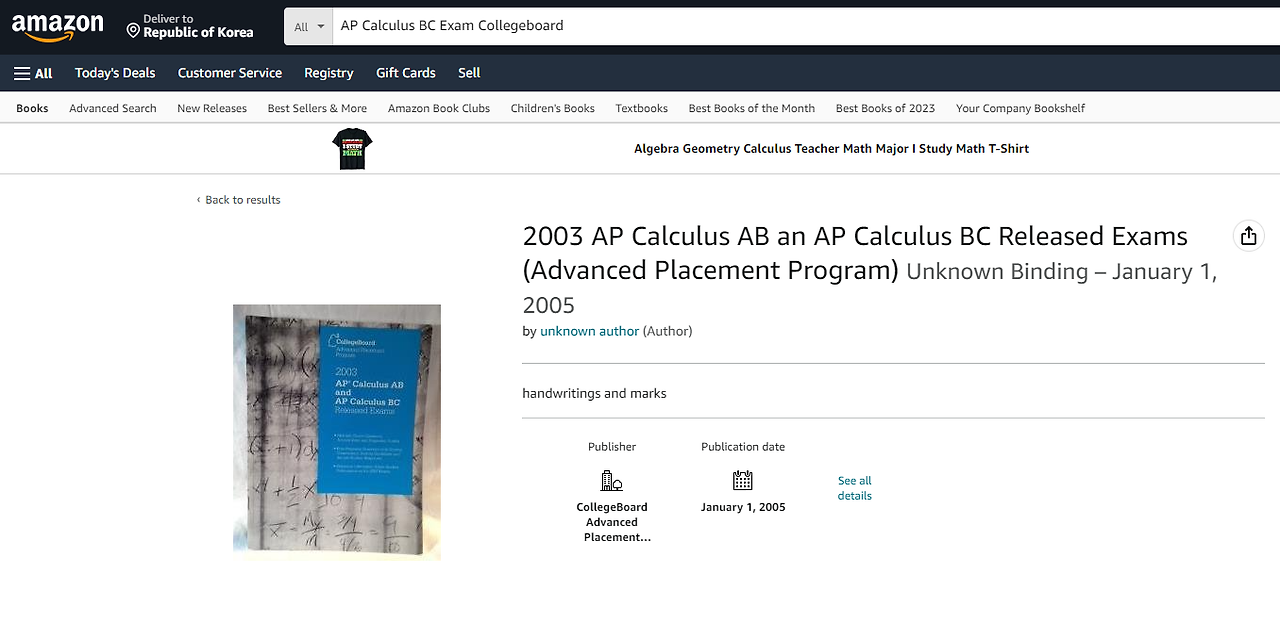 실제로 아마존에서 검색해 보면 오래전 판매되던 기출문제 중 재고로 남거나 중고로 판매되던 AP 기출문제를 확인 할 수 있습니다. - 아마존에서도 현재는 구입할 수 없습니다.