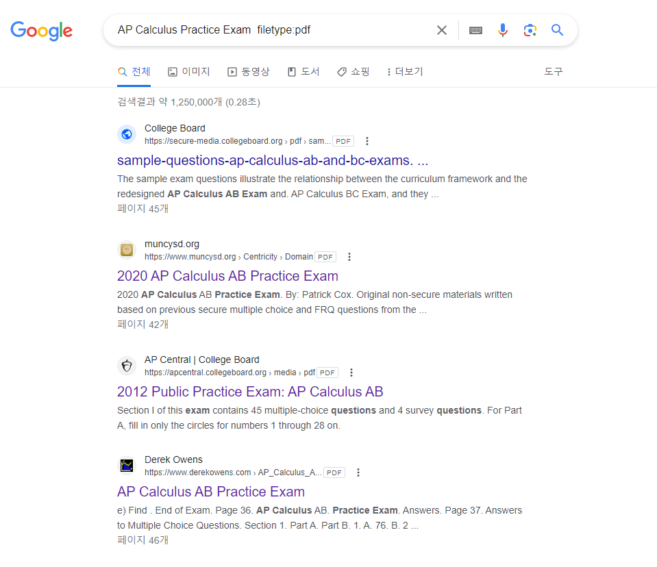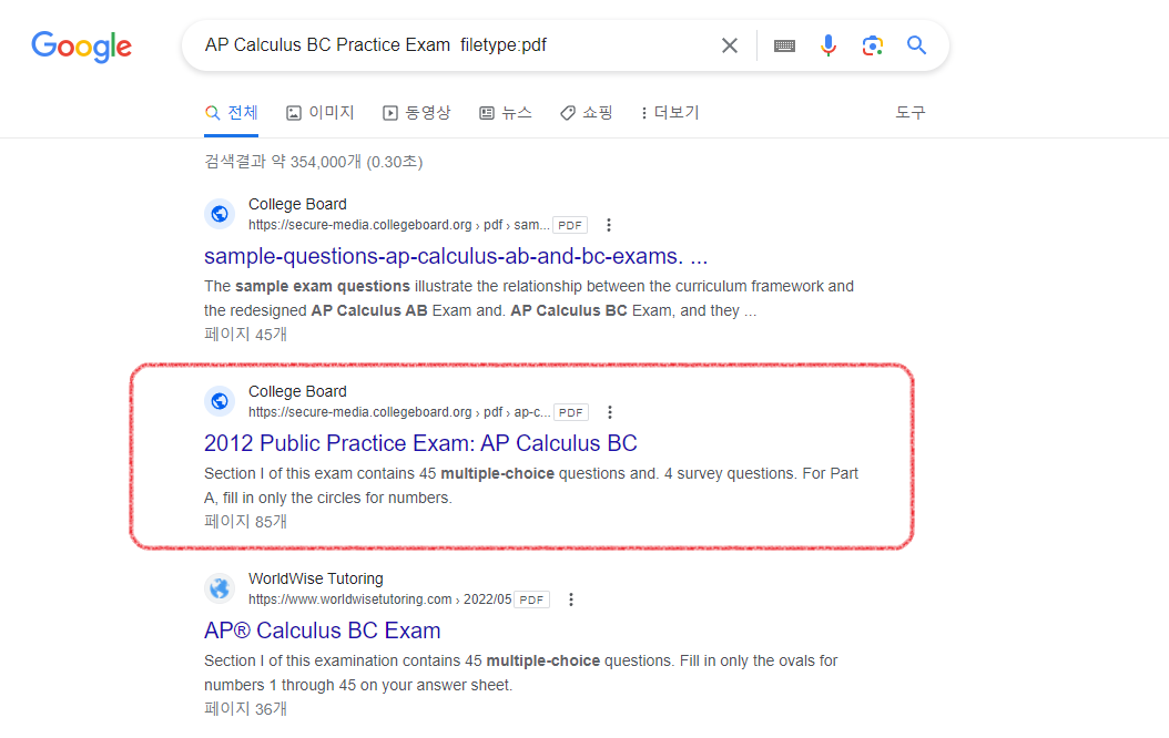 구글 검색 - AP Calculus Practice Exam site:collegeboard.com filetype:pdf