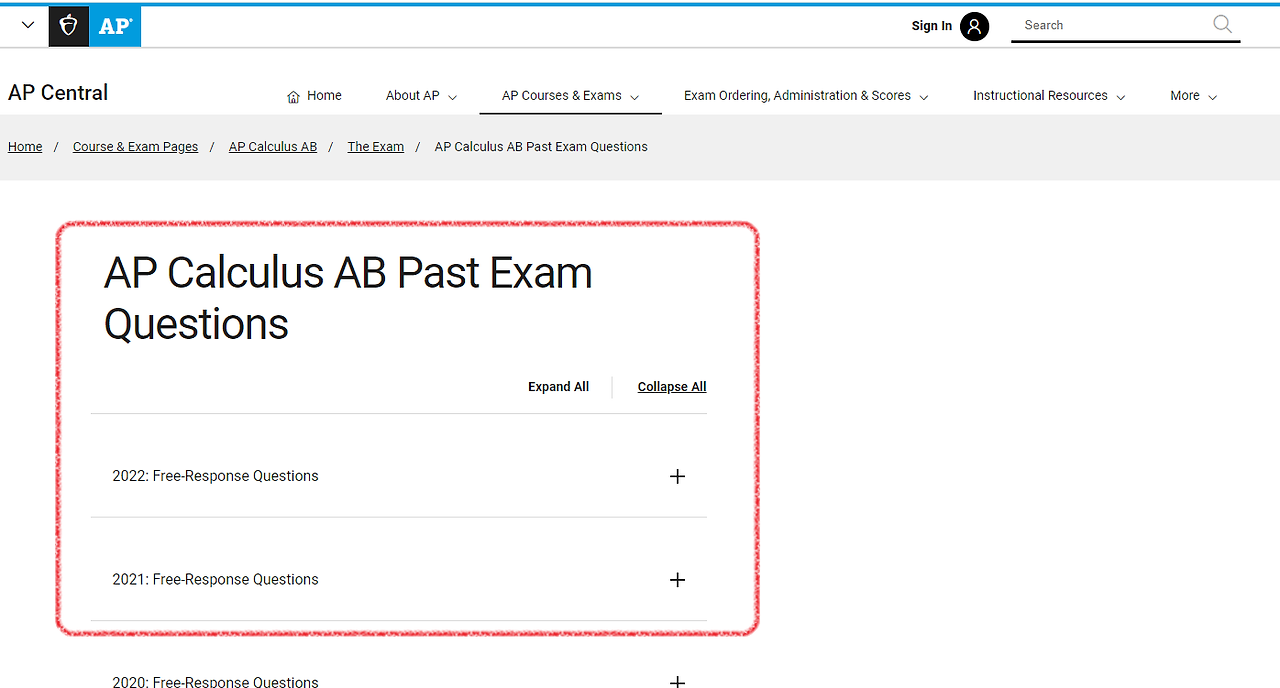 이전 글에서 AP 객관식 기출문제를 무료로 찾아보는 법을 알아봤습니다. 객관식 문제는 컬리지보드에서 공개한 자료 외에는 실제로 구하기가 쉽지 않습니다. 하지만, 주관식 (FRQ, Free Response Questions) 문제는 비교적 쉽게 그리고 정답까지 비교적 쉽게 구해서 공부할 수 있습니다.