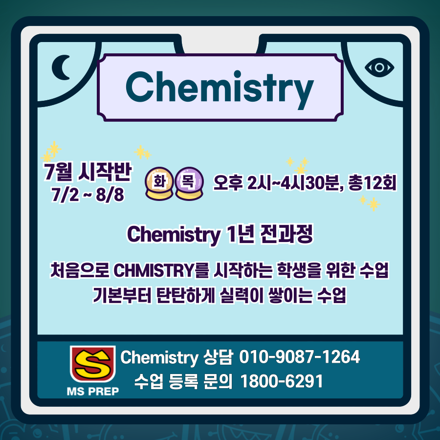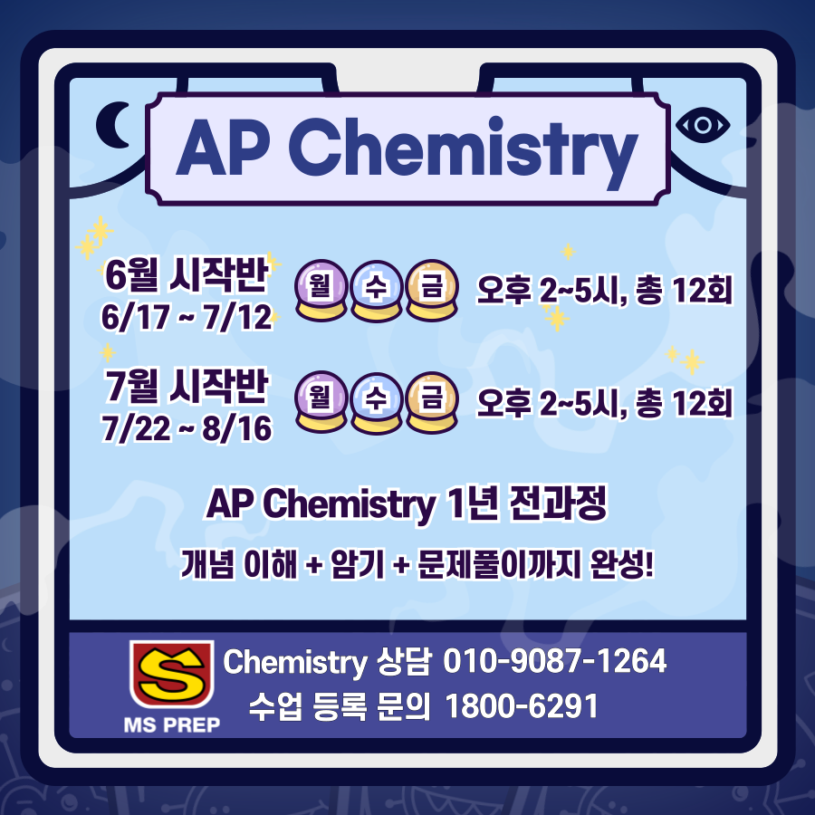| [MSPREP] 3월 AP Chemistry 수업 안내 (0) | 2024.01.19 |