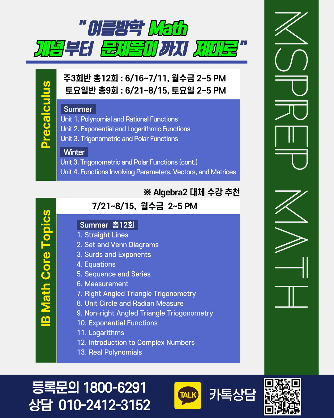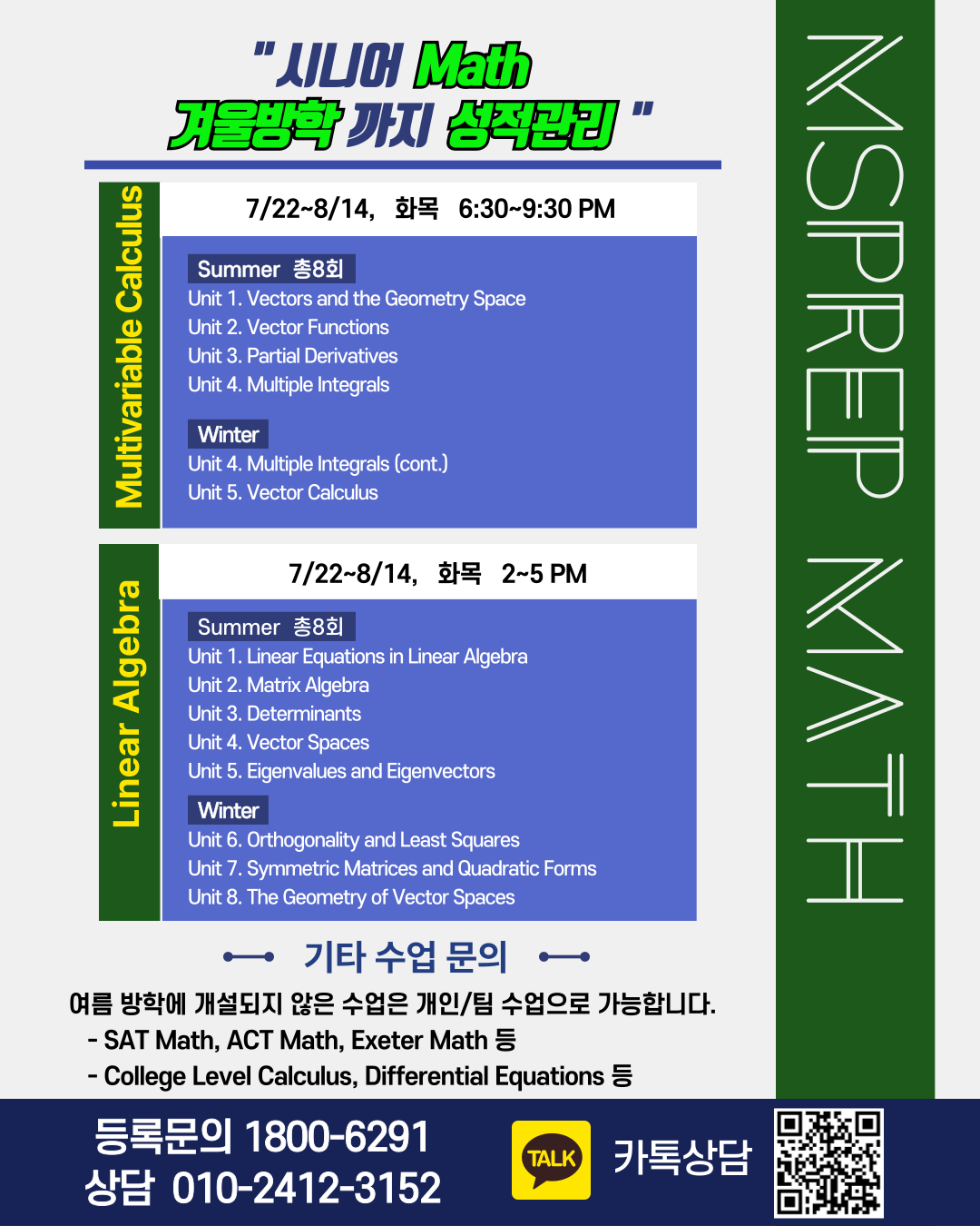 등록문의 1800-6291교과상담Physics 010-7129-7116 2025 여름방학 - 프레드 선생님의 CHEMISTRY 수업 안내등록문의 1800-6291교과상담Chemistry 010-9087-1264msprep.kr 2025 여름방학 - 고봉기 선생님의 MATH 수업
